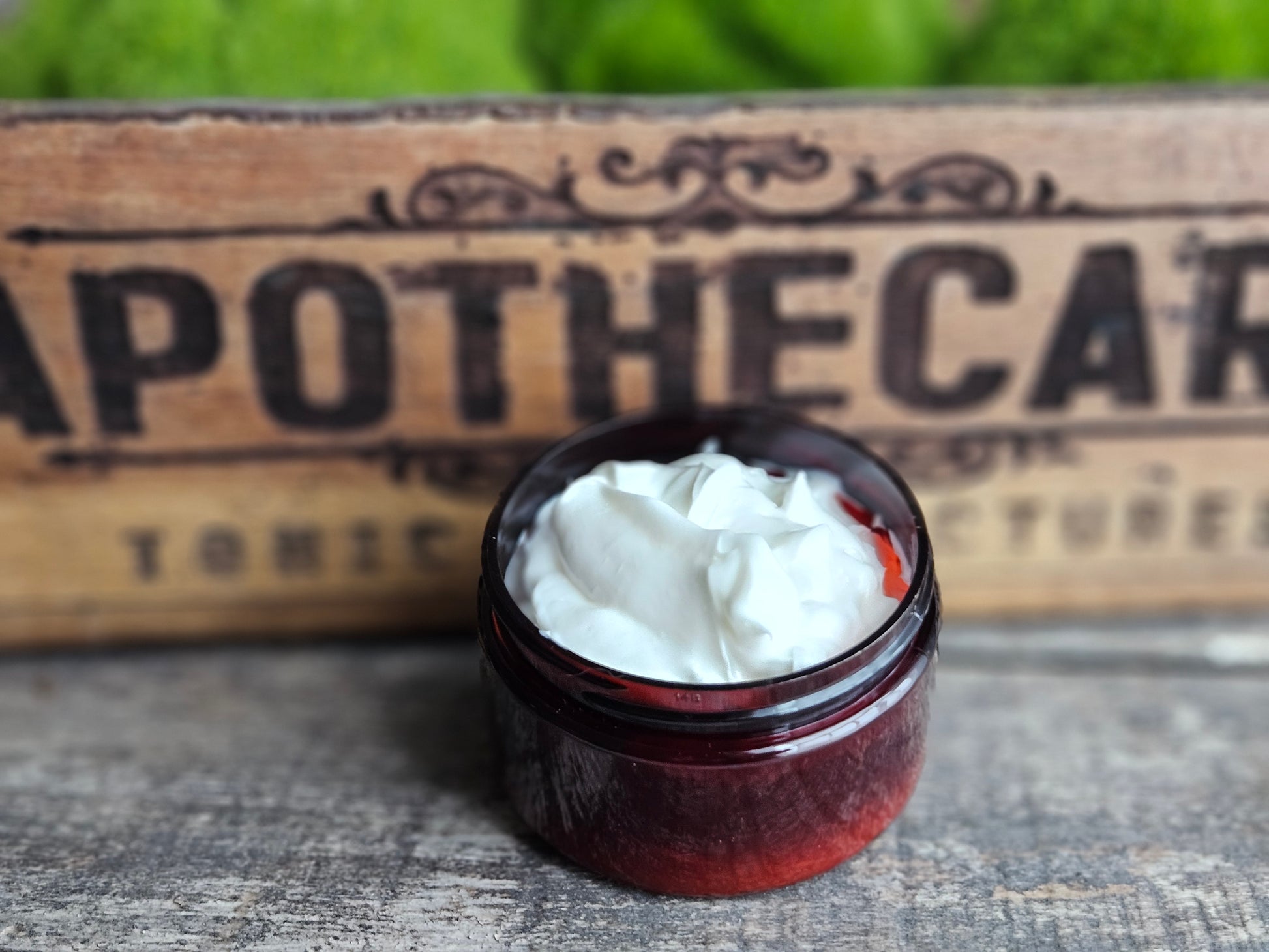 My lotions are packed in a BPA free 4 oz. dark amber plastic jar and are 100% recyclable. They are blended with a natural yogurt base and multiple beneficial skin oils to help keep your skin hydrated all day long, and no…you do not need to keep in in the refrigerator. I will sometimes use oils that I infuse with flowers or herbs as well. I keep my fragrances light and use essential oils or fragrance oils that are phthalate free. It is blended until creamy and silky smooth and will leave your skin feeling hydrated all day.